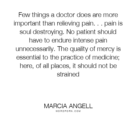 Few things a doctor does are more important than relieving pain. . . pain is soul destroying. No patient should have to endure intense pain unnecessarily. The quality of mercy is essential to the practice of medicine; here, of all places, it should not be strained