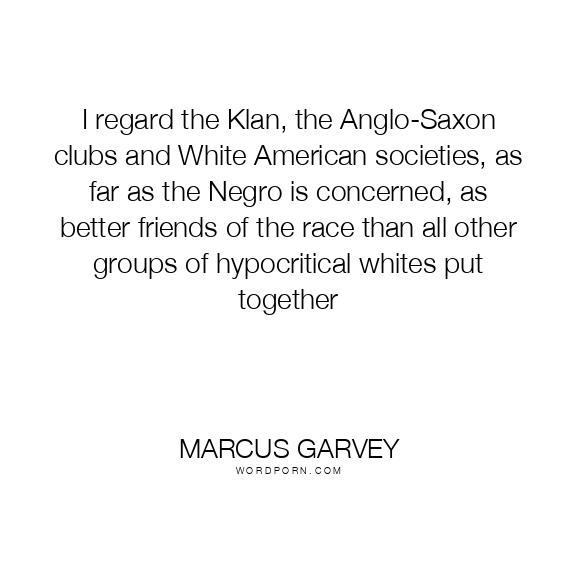 I regard the Klan, the Anglo-Saxon clubs and White American societies, as far as the Negro is concerned, as better friends of the race than all other groups of hypocritical whites put together