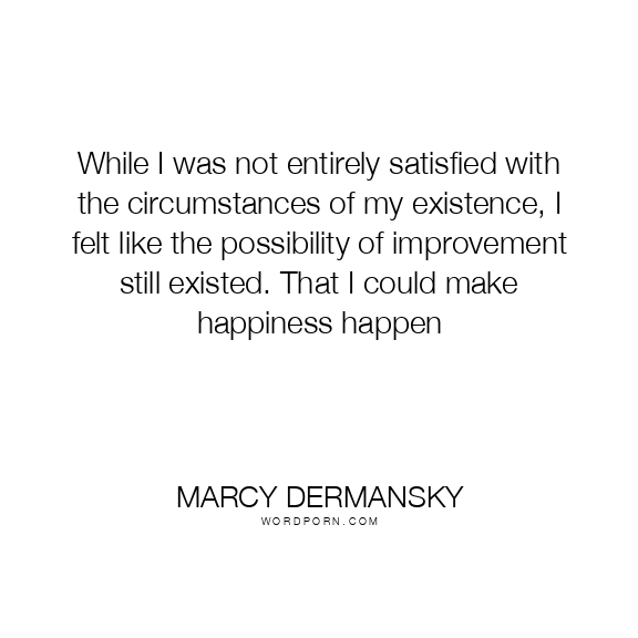 While I was not entirely satisfied with the circumstances of my existence, I felt like the possibility of improvement still existed. That I could make happiness happen