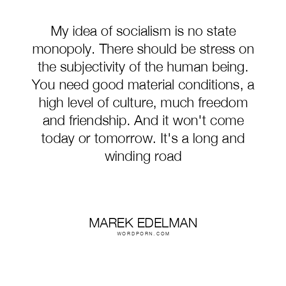 My idea of socialism is no state monopoly. There should be stress on the subjectivity of the human being. You need good material conditions, a high level of culture, much freedom and friendship. And it won't come today or tomorrow. It's a long and winding road