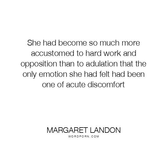 She had become so much more accustomed to hard work and opposition than to adulation that the only emotion she had felt had been one of acute discomfort