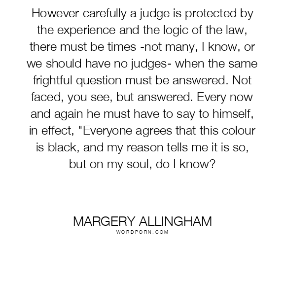 However carefully a judge is protected by the experience and the logic of the law, there must be times -not many, I know, or we should have no judges- when the same frightful question must be answered. Not faced, you see, but answered. Every now and again he must have to say to himself, in effect, "Everyone agrees that this colour is black, and my reason tells me it is so, but on my soul, do I know?