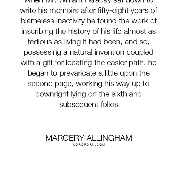 When Mr. William Faraday sat down to write his memoirs after fifty-eight years of blameless inactivity he found the work of inscribing the history of his life almost as tedious as living it had been, and so, possessing a natural invention coupled with a gift for locating the easier path, he began to prevaricate a little upon the second page, working his way up to downright lying on the sixth and subsequent folios