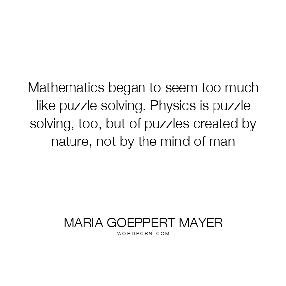 Copy Image Mathematics began to seem too much like puzzle solving. Physics is puzzle solving, too, but of puzzles created by nature, not by the mind of man Moms Typewriter A A SAVE THIS IMAGE