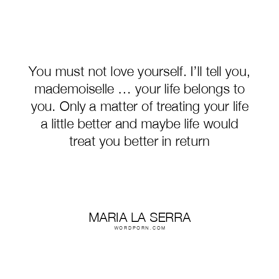 You must not love yourself. I’ll tell you, mademoiselle … your life belongs to you. Only a matter of treating your life a little better and maybe life would treat you better in return