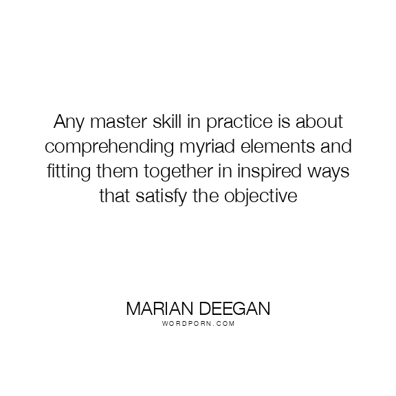 Any master skill in practice is about comprehending myriad elements and fitting them together in inspired ways that satisfy the objective