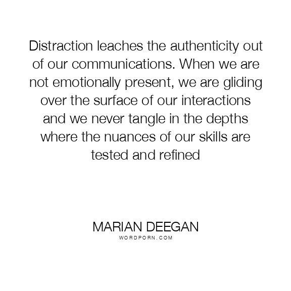 Distraction leaches the authenticity out of our communications. When we are not emotionally present, we are gliding over the surface of our interactions and we never tangle in the depths where the nuances of our skills are tested and refined