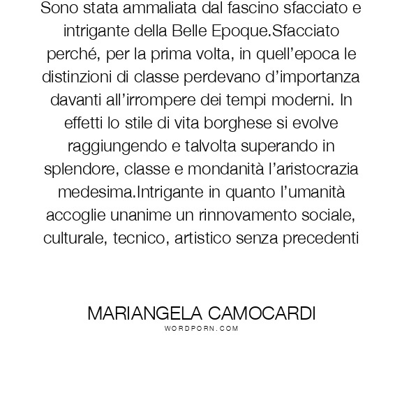 Sono stata ammaliata dal fascino sfacciato e intrigante della Belle Epoque.Sfacciato perché, per la prima volta, in quell’epoca le distinzioni di classe perdevano d’importanza davanti all’irrompere dei tempi moderni. In effetti lo stile di vita borghese si evolve raggiungendo e talvolta superando in splendore, classe e mondanità l’aristocrazia medesima.Intrigante in quanto l’umanità accoglie unanime un rinnovamento sociale, culturale, tecnico, artistico senza precedenti
