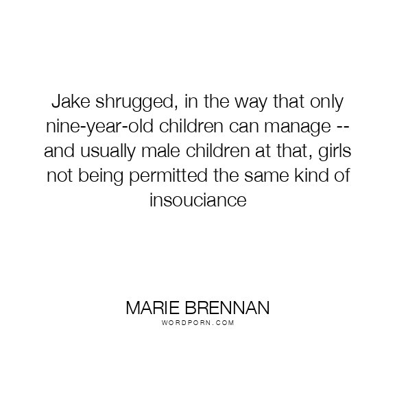 Marie Brennan quote. Jake shrugged, in the way that only nine-year-old children can manage -- and usually male children at that, girls not being permitted the same kind of insouciance