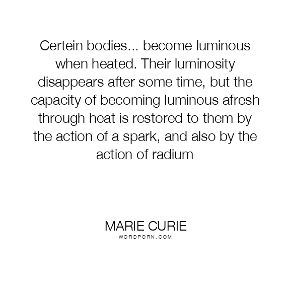 Certein bodies... become luminous when heated. Their luminosity disappears after some time, but the capacity of becoming luminous afresh through heat is restored to them by the action of a spark, and also by the action of radium