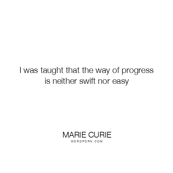 I was taught that the way of progress is neither swift nor easy