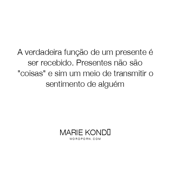 A verdadeira função de um presente é ser recebido. Presentes não são "coisas" e sim um meio de transmitir o sentimento de alguém