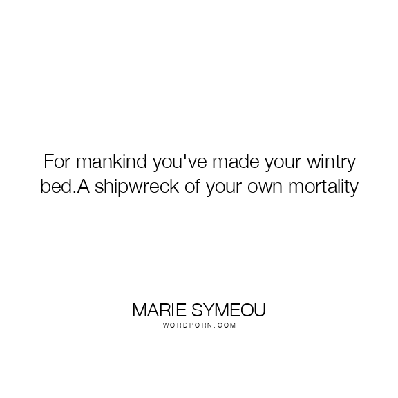For mankind you've made your wintry bed.A shipwreck of your own mortality