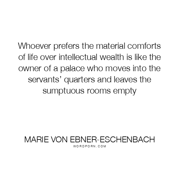 Whoever prefers the material comforts of life over intellectual wealth is like the owner of a palace who moves into the servants’ quarters and leaves the sumptuous rooms empty
