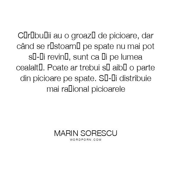 Cărăbuşii au o groază de picioare, dar când se răstoarnă pe spate nu mai pot să-şi revină, sunt ca şi pe lumea cealaltă. Poate ar trebui să aibă o parte din picioare pe spate. Să-şi distribuie mai raţional picioarele