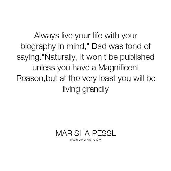 Always live your life with your biography in mind," Dad was fond of saying."Naturally, it won't be published unless you have a Magnificent Reason,but at the very least you will be living grandly