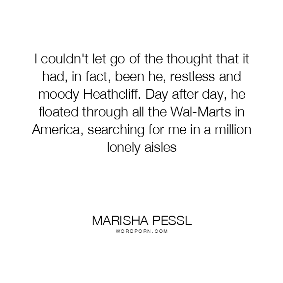 I couldn't let go of the thought that it had, in fact, been he, restless and moody Heathcliff. Day after day, he floated through all the Wal-Marts in America, searching for me in a million lonely aisles