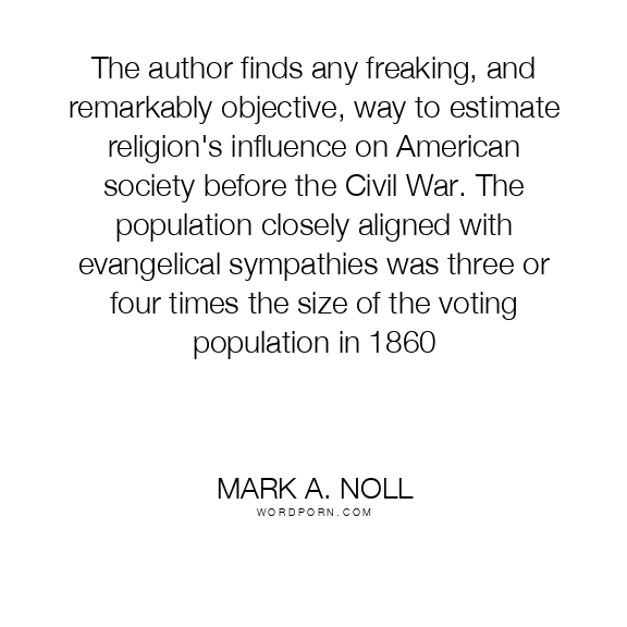 The author finds any freaking, and remarkably objective, way to estimate religion's influence on American society before the Civil War. The population closely aligned with evangelical sympathies was three or four times the size of the voting population in 1860