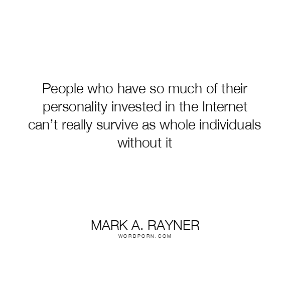 People who have so much of their personality invested in the Internet can’t really survive as whole individuals without it