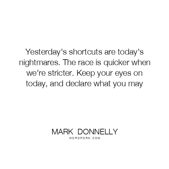 Yesterday's shortcuts are today's nightmares. The race is quicker when we're stricter. Keep your eyes on today, and declare what you may