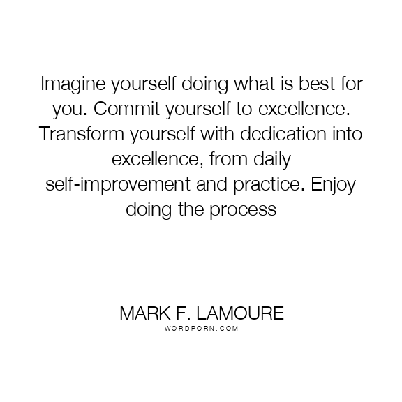 Imagine yourself doing what is best for you. Commit yourself to excellence. Transform yourself with dedication into excellence, from daily self-improvement and practice. Enjoy doing the process