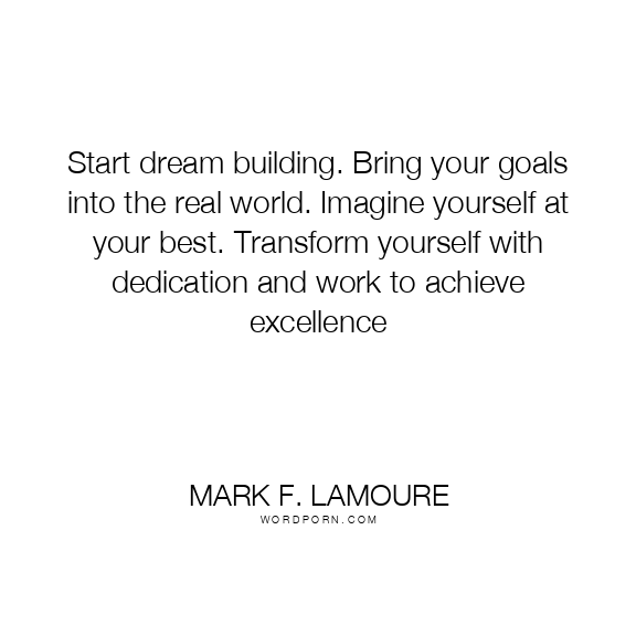 Start dream building. Bring your goals into the real world. Imagine yourself at your best. Transform yourself with dedication and work to achieve excellence