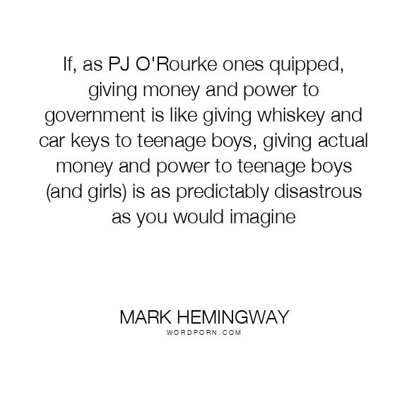 If, as PJ O'Rourke ones quipped, giving money and power to government is like giving whiskey and car keys to teenage boys, giving actual money and power to teenage boys (and girls) is as predictably disastrous as you would imagine