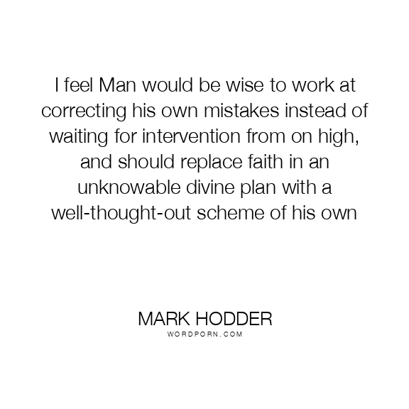 I feel Man would be wise to work at correcting his own mistakes instead of waiting for intervention from on high, and should replace faith in an unknowable divine plan with a well-thought-out scheme of his own