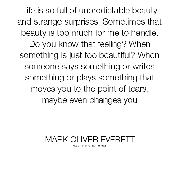 Life is so full of unpredictable beauty and strange surprises. Sometimes that beauty is too much for me to handle. Do you know that feeling? When something is just too beautiful? When someone says something or writes something or plays something that moves you to the point of tears, maybe even changes you