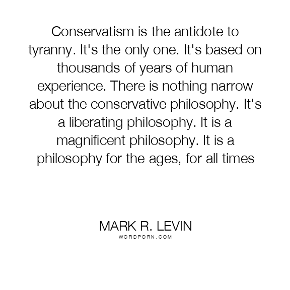 Conservatism is the antidote to tyranny. It's the only one. It's based on thousands of years of human experience. There is nothing narrow about the conservative philosophy. It's a liberating philosophy. It is a magnificent philosophy. It is a philosophy for the ages, for all times