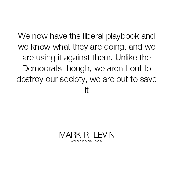 We now have the liberal playbook and we know what they are doing, and we are using it against them. Unlike the Democrats though, we aren't out to destroy our society, we are out to save it