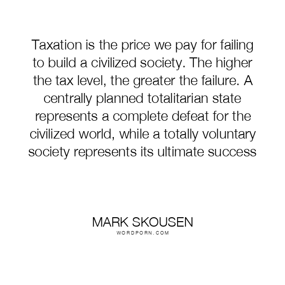 Taxation is the price we pay for failing to build a civilized society. The higher the tax level, the greater the failure. A centrally planned totalitarian state represents a complete defeat for the civilized world, while a totally voluntary society represents its ultimate success