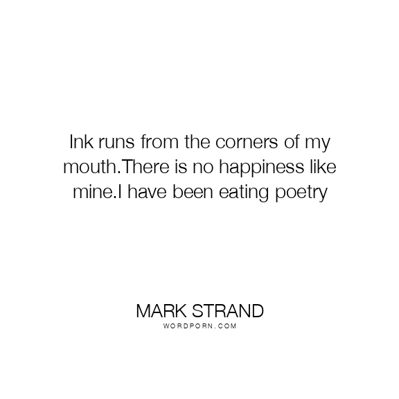 Ink runs from the corners of my mouth.There is no happiness like mine.I have been eating poetry