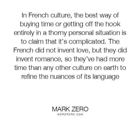 In French culture, the best way of buying time or getting off the hook entirely in a thorny personal situation is to claim that it’s complicated. The French did not invent love, but they did invent romance, so they’ve had more time than any other culture on earth to refine the nuances of its language