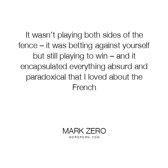 It wasn’t playing both sides of the fence – it was betting against yourself but still playing to win – and it encapsulated everything absurd and paradoxical that I loved about the French