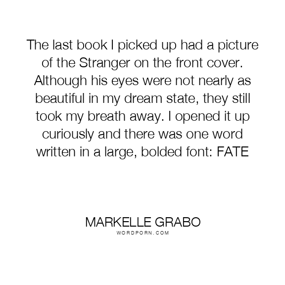 The last book I picked up had a picture of the Stranger on the front cover. Although his eyes were not nearly as beautiful in my dream state, they still took my breath away. I opened it up curiously and there was one word written in a large, bolded font: FATE