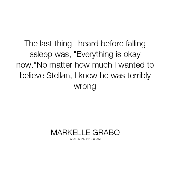 The last thing I heard before falling asleep was, "Everything is okay now."No matter how much I wanted to believe Stellan, I knew he was terribly wrong