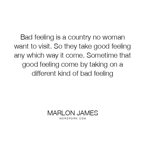 Bad feeling is a country no woman want to visit. So they take good feeling any which way it come. Sometime that good feeling come by taking on a different kind of bad feeling
