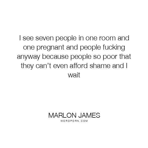 I see seven people in one room and one pregnant and people fucking anyway because people so poor that they can’t even afford shame and I wait
