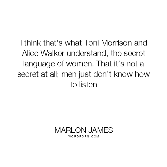 I think that’s what Toni Morrison and Alice Walker understand, the secret language of women. That it’s not a secret at all; men just don’t know how to listen