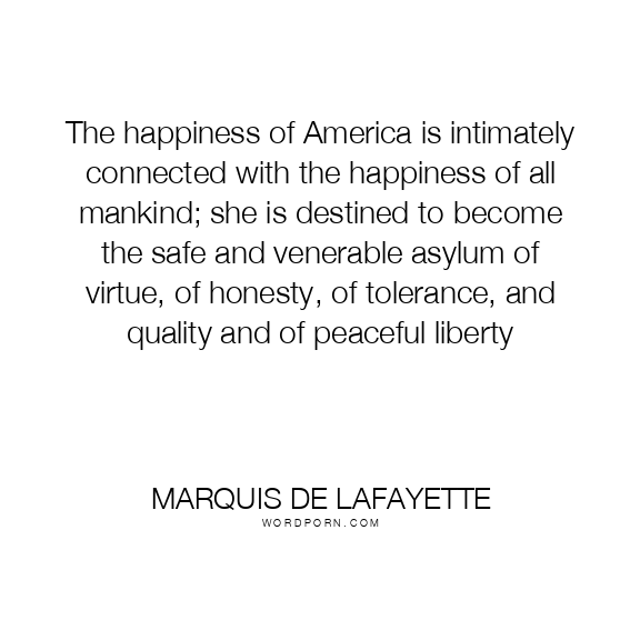 The happiness of America is intimately connected with the happiness of all mankind; she is destined to become the safe and venerable asylum of virtue, of honesty, of tolerance, and quality and of peaceful liberty