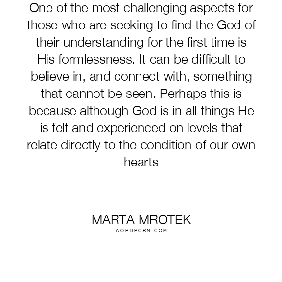 One of the most challenging aspects for those who are seeking to find the God of their understanding for the first time is His formlessness. It can be difficult to believe in, and connect with, something that cannot be seen. Perhaps this is because although God is in all things He is felt and experienced on levels that relate directly to the condition of our own hearts
