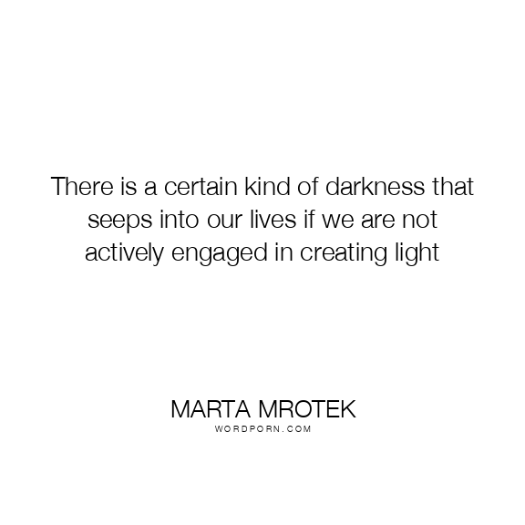 There is a certain kind of darkness that seeps into our lives if we are not actively engaged in creating light
