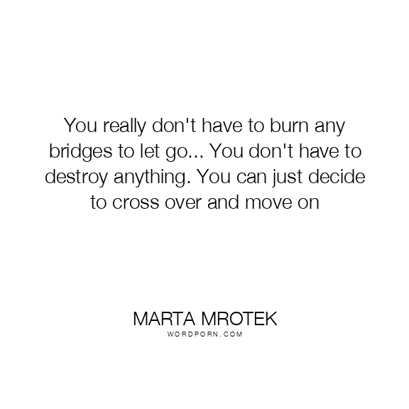 You really don't have to burn any bridges to let go... You don't have to destroy anything. You can just decide to cross over and move on