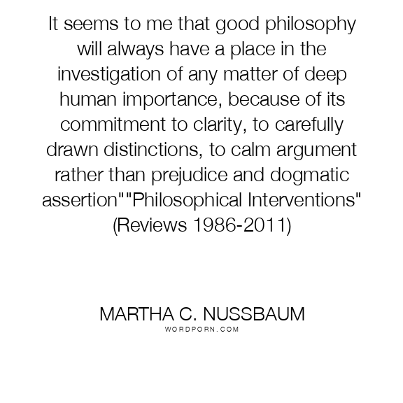 It seems to me that good philosophy will always have a place in the investigation of any matter of deep human importance, because of its commitment to clarity, to carefully drawn distinctions, to calm argument rather than prejudice and dogmatic assertion""Philosophical Interventions" (Reviews 1986-2011)