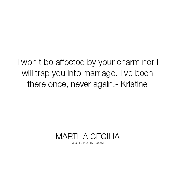 I won't be affected by your charm nor I will trap you into marriage. I've been there once, never again.- Kristine