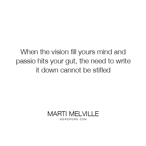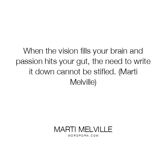 When the vision fills your brain and passion hits your gut, the need to write it down cannot be stifled. (Marti Melville)