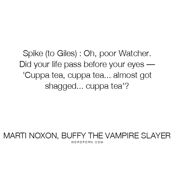 Copy Image Spike (to Giles) : Oh, poor Watcher. Did your life pass before your eyes — 'Cuppa tea, cuppa tea... almost got shagged... cuppa tea'? Moms Typewriter A A SAVE THIS IMAGE