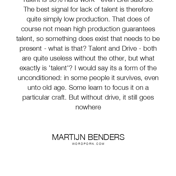 Talent is 98% hard work - even Brel said so. The best signal for lack of talent is therefore quite simply low production. That does of course not mean high production guarantees talent, so something does exist that needs to be present - what is that? Talent and Drive - both are quite useless without the other, but what exactly is 'talent'? I would say its a form of the unconditioned: in some people it survives, even unto old age. Some learn to focus it on a particular craft. But without drive, it still goes nowhere