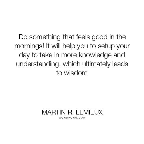 Martin R. Lemieux quote. Do something that feels good in the mornings! It will help you to setup your day to take in more knowledge and understanding, which ultimately leads to wisdom